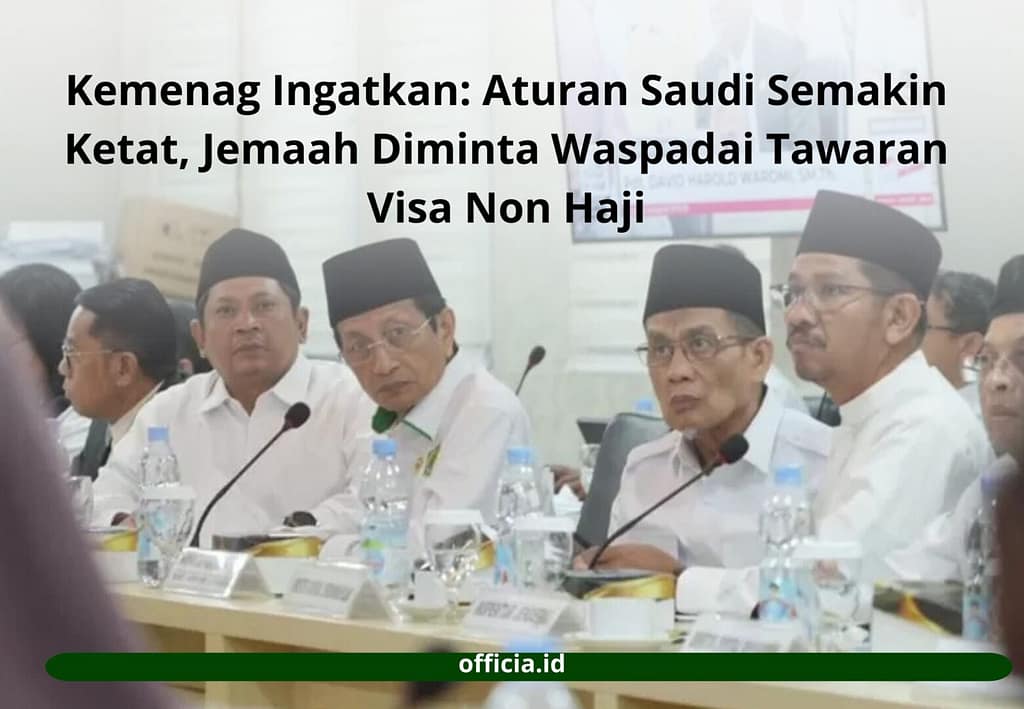 Kementerian Agama (Kemenag) Republik Indonesia kembali mengingatkan masyarakat untuk berhati-hati terhadap tawaran berhaji menggunakan visa non-haji, terutama menjelang musim haji 1446 H / 2025 M. Pemerintah Arab Saudi saat ini semakin memperketat pengawasan terhadap jemaah yang datang ke Tanah Suci menggunakan visa selain visa haji resmi.